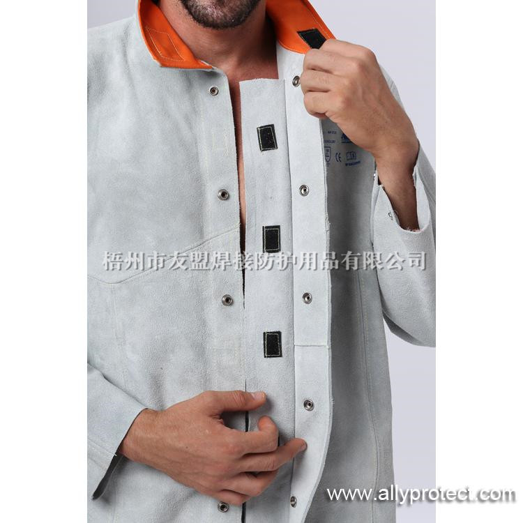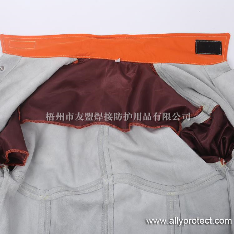 前胸防護條設(shè)計,防止燒焊飛濺物濺入衣內(nèi),雙層皮設(shè)計防止撕脫。